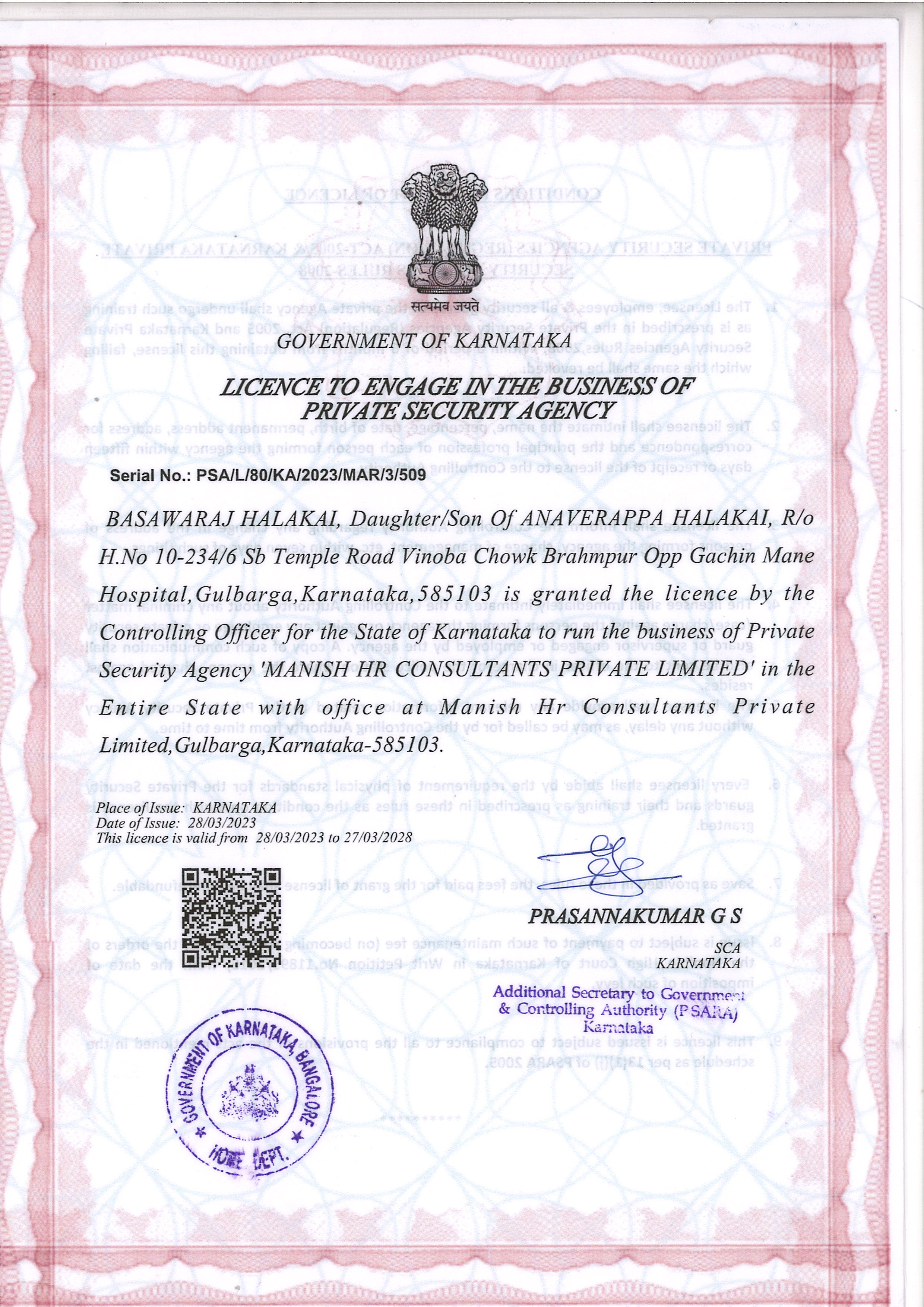 Reg No: PSA/L/80/KA/2023/MAR/3/509